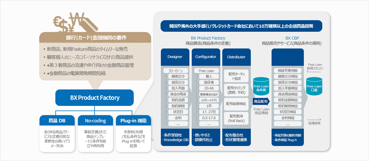 プログラム開発を行わず、個人に特化した(Hyper-personalized)商品を迅速にリリースできる金融商品ファクトリーは、優れた機能と性能により、世界最大の銀行をはじめとする大手銀行、クレジットカード会社、キャピタル会社において10万種類以上の金融商品とサービスを開発·運用しています。